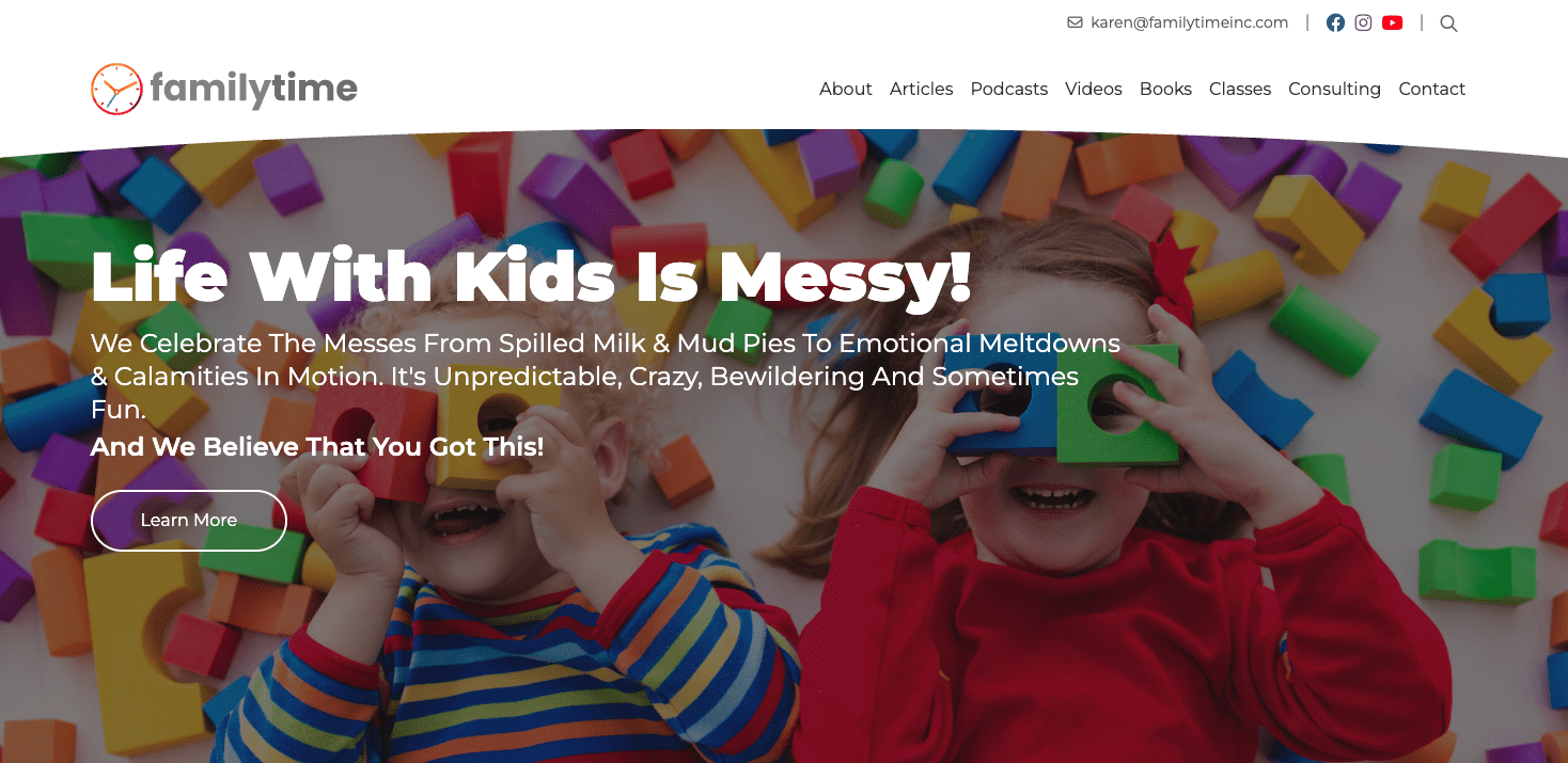 The redesigned site organizes Family Time’s offerings into clear, easy-to-navigate sections: parent-child classes by age group, speaking engagements, educator workshops, and consulting services. We built custom functionality that allows parents to quickly find classes that fit their child’s developmental stage, from the Discover Me infant program through preschool readiness classes. A dedicated speaking and workshops section makes it easy for schools and organizations to book Karen for events, with integrated contact forms and testimonials from past clients. The result is a site that works as hard as Karen does—connecting families to the resources they need while positioning Family Time Inc as the go-to authority for positive parenting solutions in the Boca Raton area and beyond.