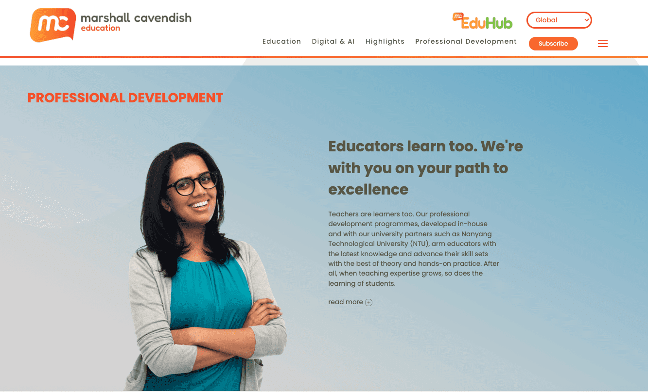 On the development side, we engineered a robust platform capable of handling a vast product catalog, integrated help desk functionality via Freshdesk, and seamless newsletter subscriptions through HubSpot. The site connects directly to MCEduHub—their proprietary learning management system—creating a unified ecosystem for teachers and students. Performance optimization was critical given the global audience, ensuring fast load times across regions. The result is an enterprise-grade website that positions Marshall Cavendish Education for continued digital growth while honoring their legacy of academic excellence.